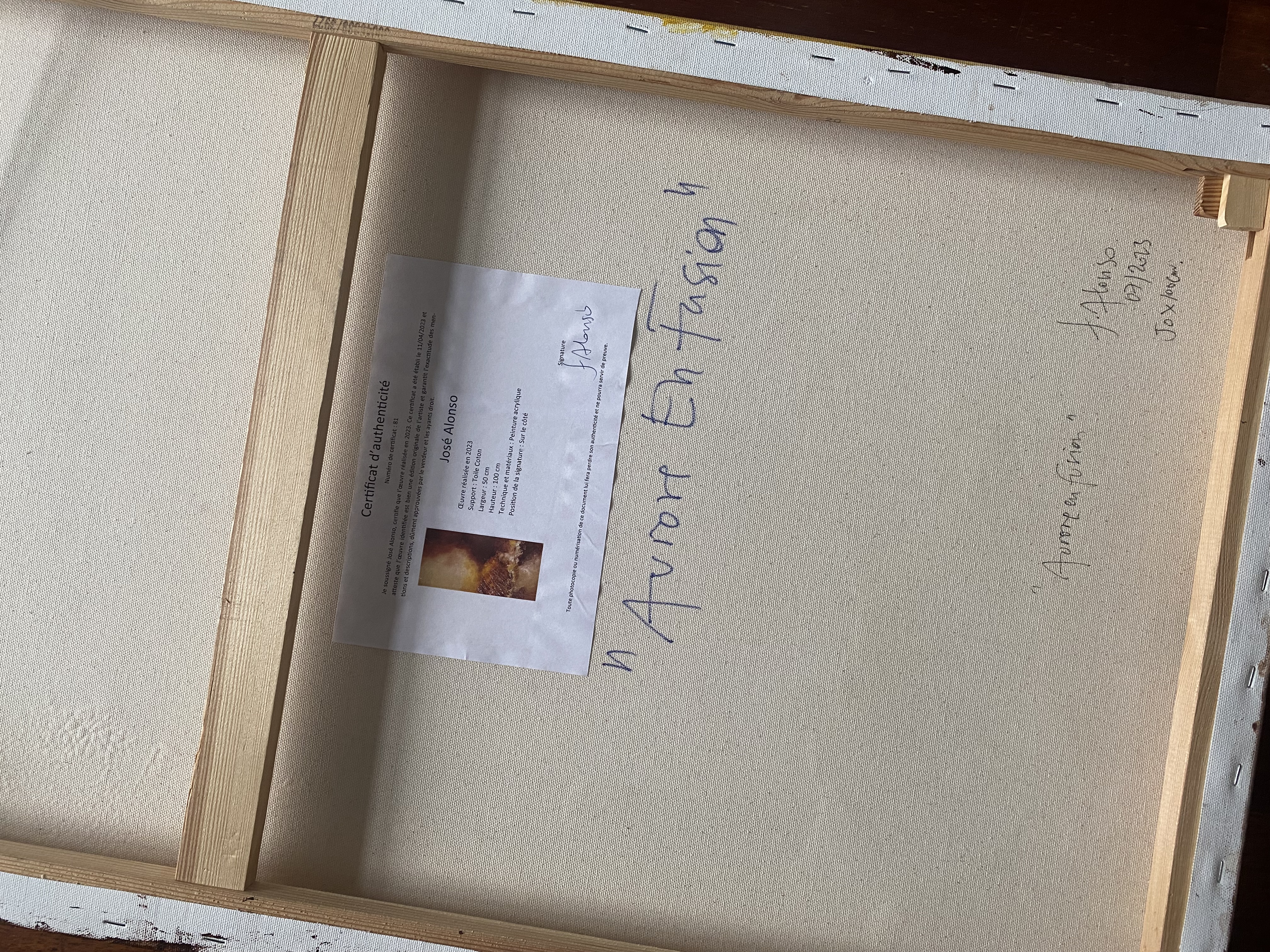 Toutes les œuvres sont vendues avec une facture et un certificat d'authenticité. Le certificat constitue la "carte d'identité" de l'œuvre et vous garantit une création unique et originale.