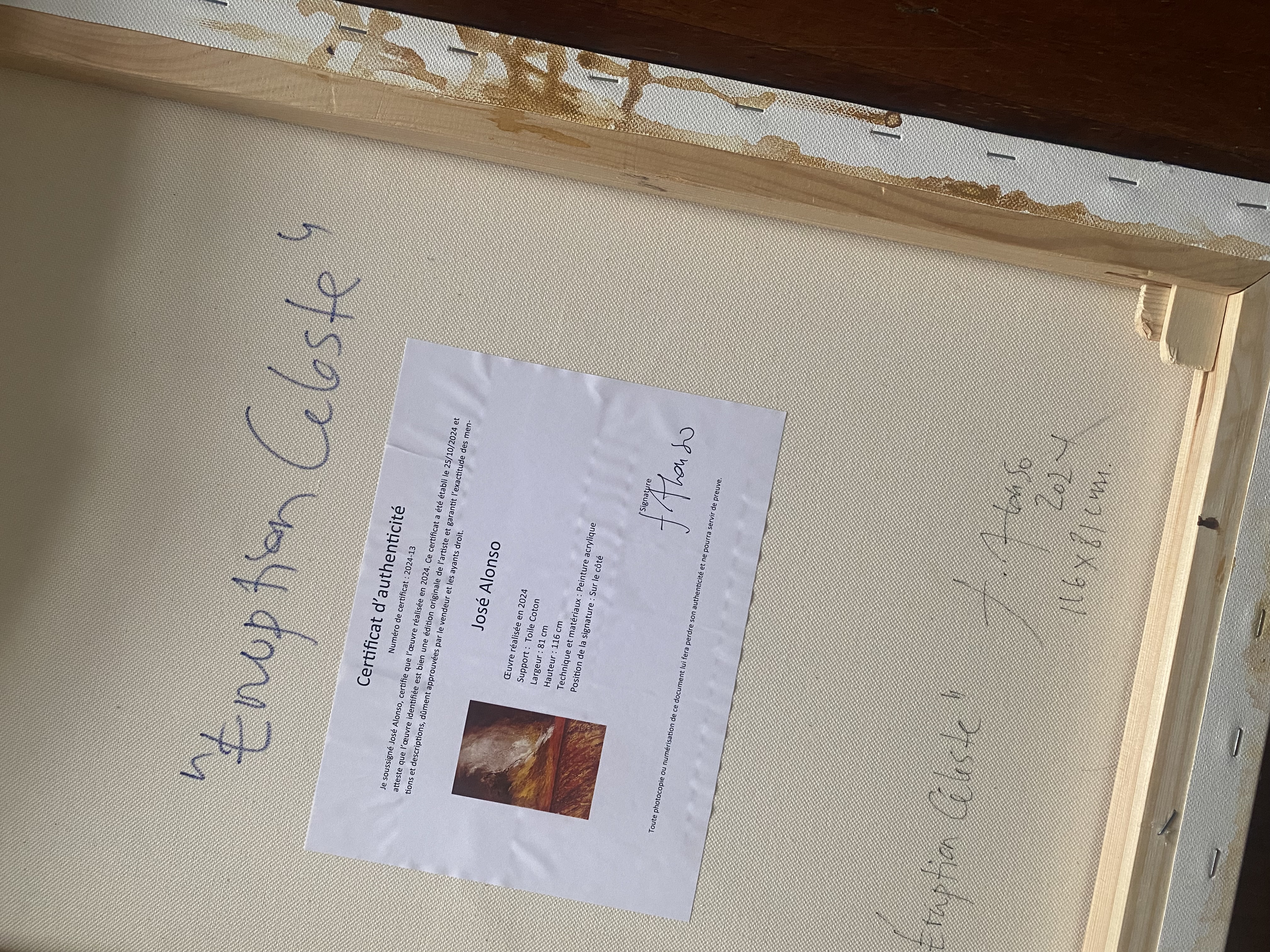 Toutes les œuvres sont vendues avec une facture et un certificat d'authenticité. Le certificat constitue la "carte d'identité" de l'œuvre et vous garantit une création unique et originale.